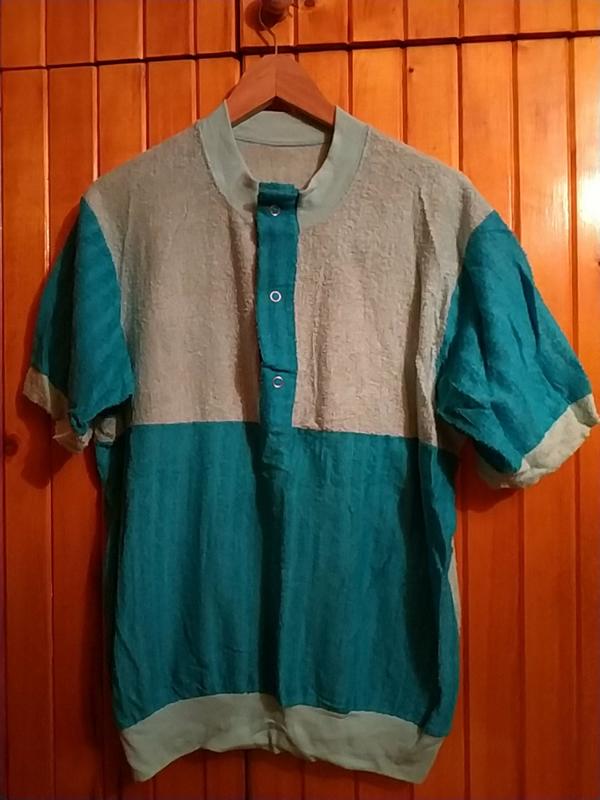 продам тенниску мужскую на 48-50 размер, бирюзового и голубого цвета, Состояние очень хорошее, дефект на фото Пог 54 Ширина плеч 46 см Длина по спинке 68 см Длина плеча 15 см Удачных покупок отправлю Новой почтой или УкрПочтой