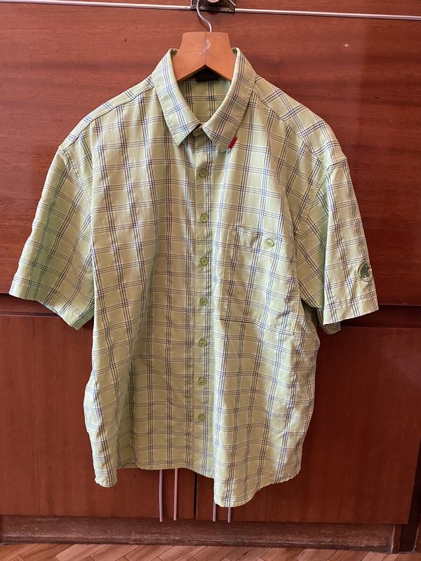 Зелёная рубашка с коротким рукавом Ширина подмышки:60см Длина от верху до низа: 76см Длина рукава: 25см