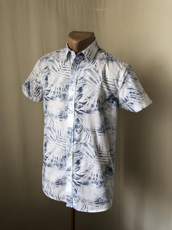 Рубашка гавайская белая с голубым гавайка тенниская пляжная сорочка cedarwood state