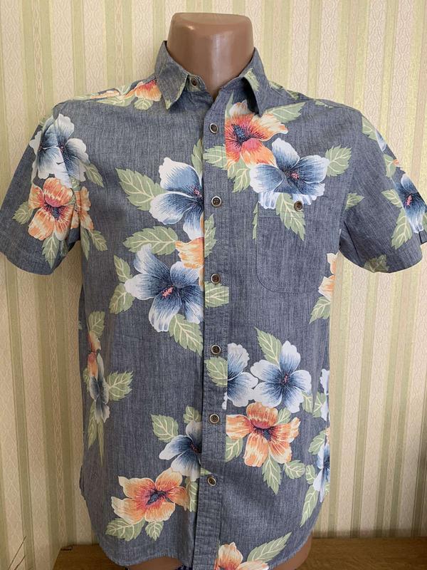 состояние идеальное красивая летняя расцветка Индия 100% Катон есть нагрудный карман на пуговице приталенная изнанка другого цвета замеры плечи 46 рукав 22 пог 55 пот 53 низ по 55 длина 73 низ заокруглен