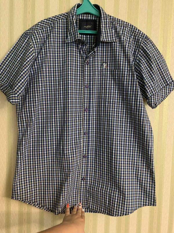 состояние идеальное в клеточку средней плотности х/б застегуется на пуговицах есть запасная есть нагрудный карман низ заокруглен замеры плечи 49 рукав 22,5 пог 60 пот 58 низ по 58 длина 78