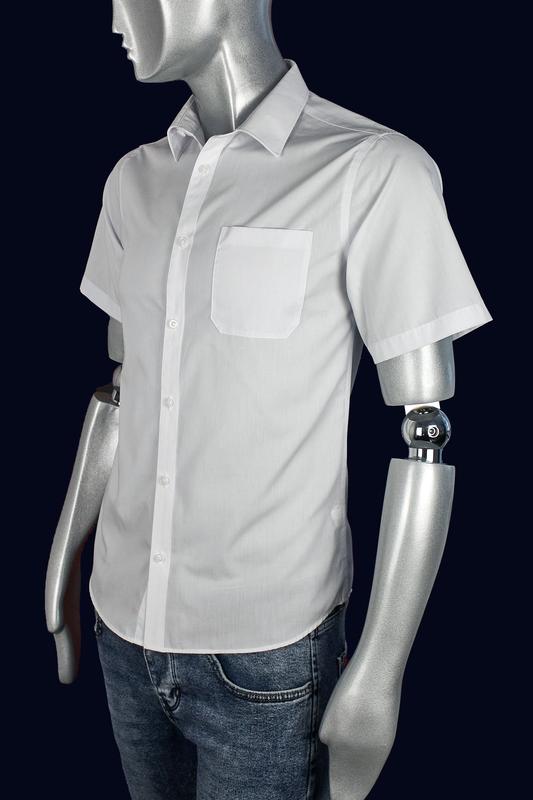Белоснежная, белая slim fit мужская рубашка короткий рукав marks & spencer приталенная