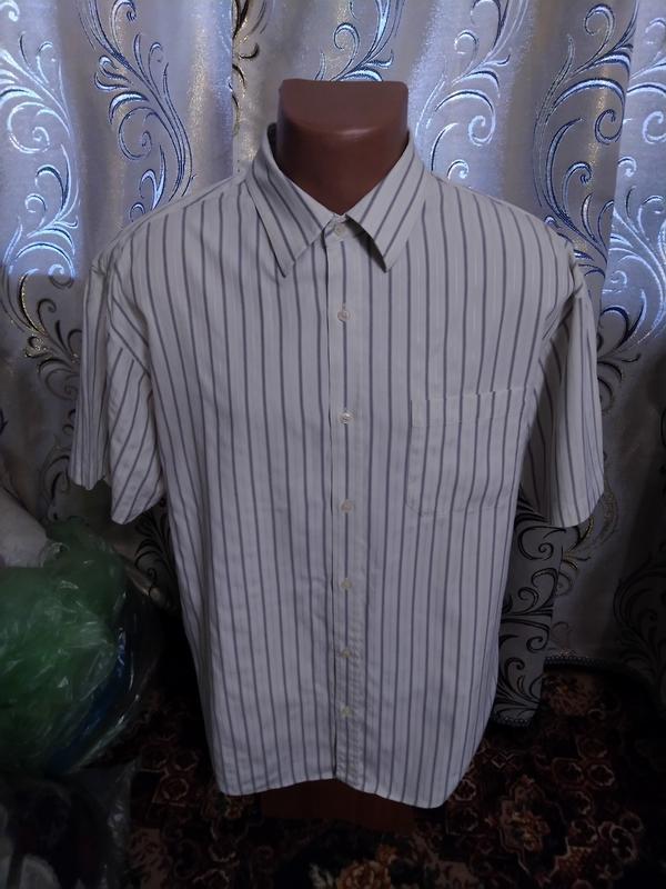 Чоловіча сорочка / шведка / теніска у полоску Taylor & Wright (Matalan). Розмір - L. На обхват грудей 104-109 см (інформація з ярлика). Заміри: плечі 53 см, напівобхват грудей 59 см, напівобхват талії 59 см, напівобхват по низу 59 см, довжина 77,5 см. Склад: 65% віскоза, 35% поліестер. В ідеальному стані