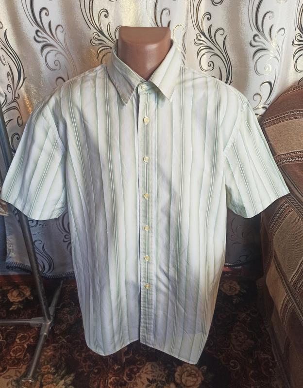 Стильна чоловіча сорочка / шведка / теніска в смужку Thomas Nash by Debenhams. Розмір - XL. Заміри: плечі 53 см, напівобхват грудей 63 см, напівобхват талії 62 см, напівобхват по низу 63 см, довжина 80 див. Склад: 100% котон. У стані нової