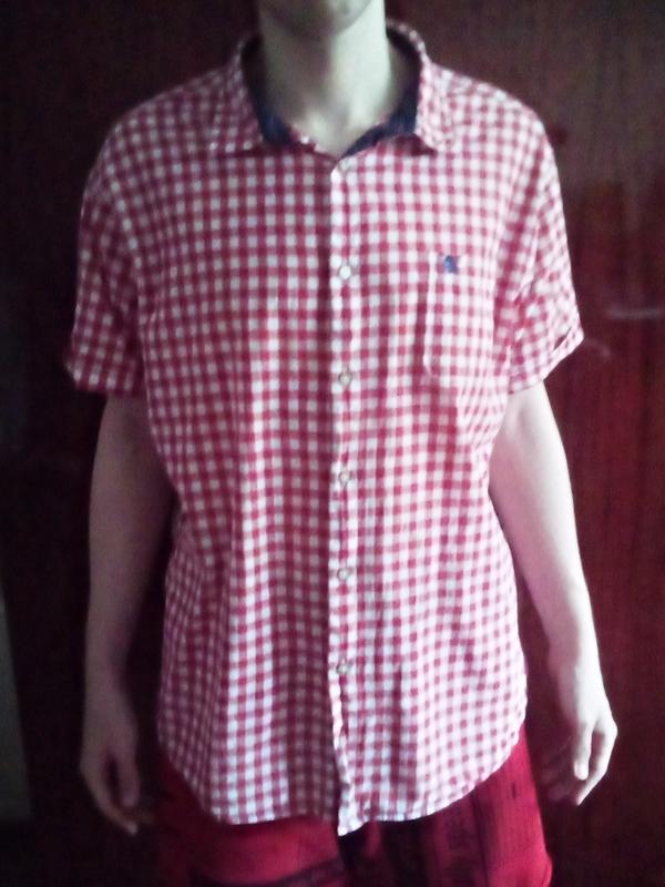 Добрий день. Рада вітати вас на своїй сторінці. Всі речі в хорошому стані. теніска в клітинку, з коротким рукавом, тоненька, горловина і поличка з синьою обробкою є плямка (фото) плече - 15 см рукав - 20 см довжина - 71 см спинка - 46 см пог від пройми до пройми - 61 див. модель зріст 182 см, розмір XL Купляєте те що на фото без претензій Перед покупкой все хорошо заміряйте, обміну та повернення немає Доставка НП та УП після оплати на картку З 15 квітня по 15 травня буду відсутня