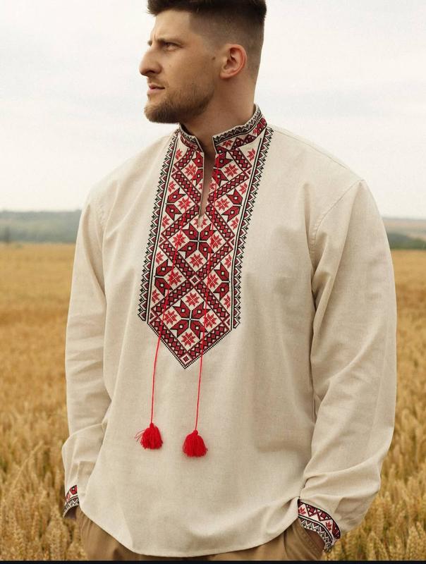 Вишиванка на сірому льоні