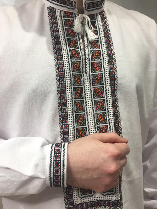 Вітаємо, Вас, це крамниця вишиванок ,,Савчук Вишивка‘‘! В нас Ви можете придбати дизайнерські і стильні вишиванки ручної роботи на кожний день. Перед замовленням запитайте чи є розмір в наявності!!! Розмір вказуйте в коментарях!!! Є можливість замовити українські чоловічі розміри за розміром коміру (обхват шиї) в сантиметрах: 41-43 (розмірна сітка на фото). На фото вишиванка 43 розміру, на об‘ємом в грудях - 128см. Дана сорочка чудово пасує, як для святкового так і повсякденного одягу, брюк, джинсів. Вишивка на сорочці - оберіг для людини. Стиль вишивки - хрестик. Вишивка - ручна. Тканина - домоткане полотно. Колір тканини - білий. Колір вишивки - гуцульські тони. Довжина рукава - довгий. Прання - машинне автомат або ручне не більше 40 градусів. Нитки - водостійкі. Прасування - найкраще: після прання, ще трохи вологу сорочку попрасувати і вивісити. Ми впевнені, Ви оцінете практичність та багатство української вишиванки. Приємних та вдалих покупок!