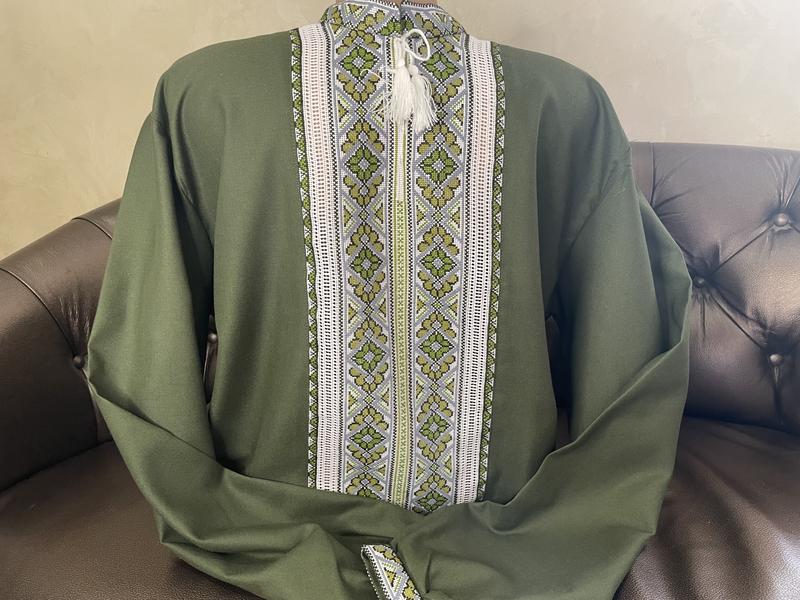 Поздравляем, Вас, это магазин вышиванок "Савчук Вышивка"! У нас Вы можете приобрести дизайнерские и стильные вышиванки ручной работы на каждый день. Перед заказом спросите есть ли размер налицо!!! Размер указывайте в комментариях!!! Есть возможность заказать мужские украинские размеры по размеру воротника (обхват шеи) в сантиметрах: 39-41 (размерная сетка на фото). На фото вышиванка 41 размера, на объеме в груди - 122см. Данная рубашка прекрасно подходит, как для праздничной так и повседневной одежды, брюк, джинсов. Вышивка на рубашке – оберег для человека. Стиль вышивки – крестик. Вышивка – ручная. Ткань – домотканое полотно. Цвет ткани – зеленый. Цвет вышивки – гуцульский. Длина рукава – длинный. Стирка – машинная автомат или ручная не более 40 градусов. Нити – водостойкие. Глажка – лучшее: после стирки, еще немного влажную рубашку погладить и вывесить. Мы уверены, Вы оцените практичность и богатство украинской вышиванки. Приятных и удачных покупок!