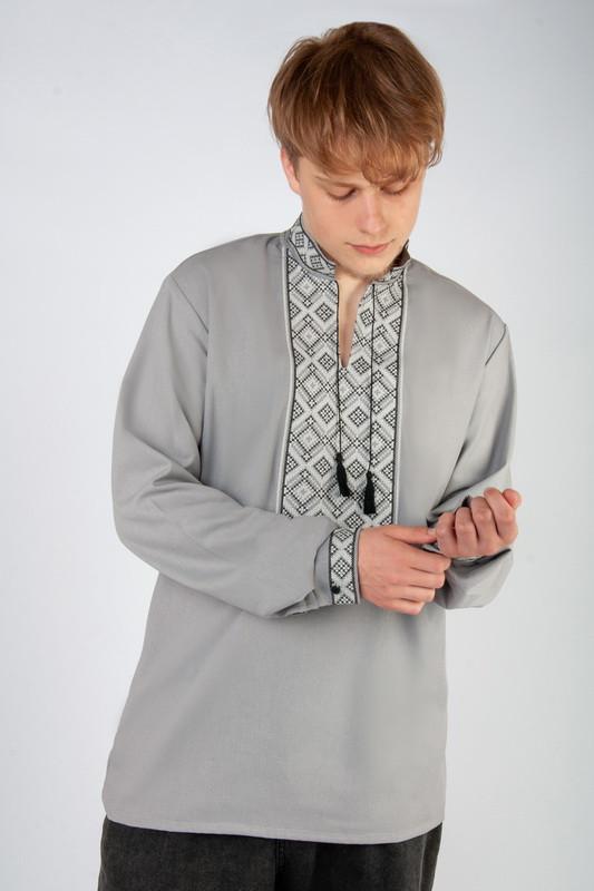 Цена зависит от размера р44-1000грн (продана) р46-1050грн (продана) р48-1090грн(черная) р50-1110грн(черная,серая) р52-1140грн р54-1170грн р56-1250грн Мужская вышитая рубашка с длинным рукавом, выполнена из льняного полотна. Льняная ткань отличается высокой прочностью, отлично впитывает влагу, обладает хорошими свойствами воздухо- и теплопроницаемости, проста в уходе и долговечна в использовании. Данная модель прямого кроя, имеет воротник-стойку, рукава с манжетами на застежке, воротник, манжеты и перед рубашки украшено вышитым орнаментом, сбоку для удобства есть небольшие разрезы. Полотно: лляна тканина Состав: 55% лен, 45% вискоза Вышитый орнамент: машинная вышивка. Мужская вышитая рубашка с длинным рукавом Мужская вышитая рубашка с длинным рукавом в стиле "Милитари", выполнена из льняного полотна. Льняная ткань отличается высокой прочностью, отлично впитывает влагу, обладает хорошими свойствами воздухо- и теплопроницаемости, проста в уходе и долговечна в использовании. Данная модель прямого кроя, имеет воротник-стойку, рукава с манжетами на застежке, воротник, манжеты и перед рубашки украшено вышитым орнаментом, сбоку для удобства есть небольшие разрезы. Полотно: лляна тканина Состав: 55% лен, 45% вискоза Вышитый орнамент: машинная вышивка.