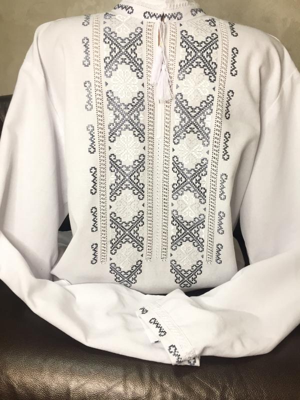 Поздравляем, Вас, это магазин вышиванок "Савчук Вышивка"! У нас Вы можете приобрести дизайнерские и стильные вышиванки ручной работы на каждый день. Перед заказом спросите есть ли размер налицо!!! Размер указывайте в комментариях!!! Есть возможность заказать украинские мужские размеры по размеру воротника (обхват шеи) в сантиметрах: 40-43 (размерная сетка на фото). На фото вышиванка 43 размера, объемом в груди – 126см. Данная рубашка прекрасно подходит, как для праздничной так и повседневной одежды, брюк, джинсов. Вышивка на рубашке – оберег для человека. Стиль вышивки – Низинка. Вышивка – ручная. Ткань – полотно. Цвет ткани – белый. Цвет вышивки – гуцульские тона. Длина рукава – длинный. Стирка – машинная автомат или ручная не более 40 градусов. Нити – водостойкие. Глажка – лучшее: после стирки, еще немного влажную рубашку погладить и вывесить. Мы уверены, Вы оцените практичность и богатство украинской вышиванки. Приятных и удачных покупок