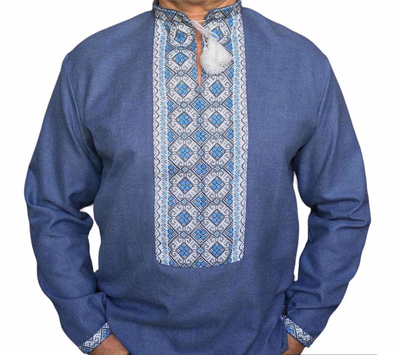 Вишиванка чоловіча ,лен домотканий ручна робота "небо 1"