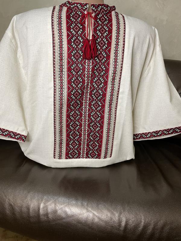 Вітаємо, Вас, це крамниця вишиванок ,,Савчук Вишивка‘‘! В нас Ви можете придбати дизайнерські і стильні вишиванки ручної роботи на кожний день. Перед замовленням запитайте чи є розмір в наявності!!! Розмір вказуйте в коментарях!!! Є можливість замовити українські чоловічі розміри за розміром коміру (обхват шиї) в сантиметрах: 41,42,43 (розмірна сітка на фото). На фото вишиванка 43 розміру, на об‘ємом в грудях - 126см. Дана сорочка чудово пасує, як для святкового так і повсякденного одягу, брюк, джинсів. Вишивка на сорочці - оберіг для людини. Стиль вишивки - хрестик. Вишивка - ручна. Тканина - сірий льон. Колір тканини - білий. Колір вишивки - червоний. Довжина рукава - короткий. Прання - машинне автомат або ручне не більше 40 градусів. Нитки - водостійкі. Прасування - найкраще: після прання, ще трохи вологу сорочку попрасувати і вивісити. Ми впевнені, Ви оцінете практичність та багатство української вишиванки. Приємних та вдалих покупок!
