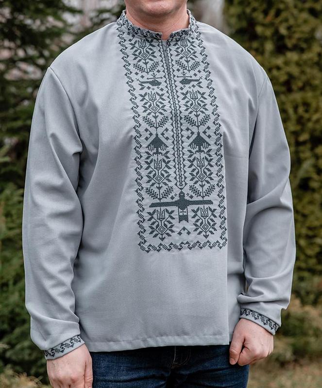 Оригінальна чоловіча вишиванка льон. сіра чоловіча вишиванка з льону.
