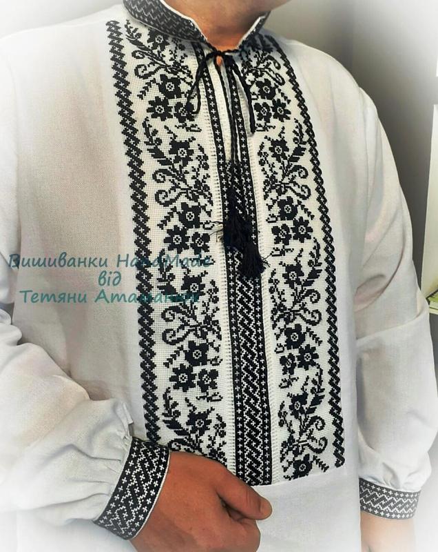 ### Чоловіча вишиванка ручної роботи на домотканому полотні "МОНОХРОМ" Монохромність за останні роки набула трендових мотивів у різних сферах діяльності. Однобарвний стиль не оминув і вишиванкову культуру. Найбільш поширеною однотонністю у вишиванках є стиль "чорним по білому". А це тому що саме "Чорні вишивки" є прикладом багатогранності, неоднозначності та глибини СИМВОЛІКИ. З давніх часів в багатьох районах України старші люди, які були хранителями мудрості та знань поколінь, носили саме чорні вишиванки. Чорний колір у побуті також був поширений на Поділлі, де він активно використовувався у вишиванках. Цікаво, що в деяких районах (Сокальщина) навіть весільні вишиванки вишивалися саме чорним кольором. Вишивання білим та чорним кольором на білому полотні є одним із найдавніших на теренах України. Чорний колір у вишивці є кольором землі, урочистості, багатства. - ### Вишиванка Handmade для чоловіків - розміри (M/L/Xl/XXl); - ### Тканина - домоткане полотно, 100% бавовна; - ### Вишиті вставки та акуратно вшиті в тканину; - ### Вишивка технікою хрестик, акриловими нитками; - ### Горловина солов'їними вічками; - ### З довгим рукавом; Розмірна сітка для визначення потрібного розміру вишиванки (розміри вказані за мірками ЛЮДИНИ*) * Якщо знімаєте мірки з готового виробу, тоді не дивуйтеся, що ширина сорочки є більшою (~<10 см), за вказану у таблиці. Все вірно, адже виріб повинен бути вільним, забезпечувати свободу та комфорт у пересуванні. РІСТ (см) Міжнародний розмір Український розмір Обхват шиї(см) Обхват грудей(см) Обхват талії(см) Довжина рукава (см) 168 XXS 44 37 88 78 61 171 XS 46 38 92 82 62 174 S 48 39 96 86 63 177 M 50 40 100 90 64 180 L 52 41 104 94 65 182 XL 54 42 108 98 66 184 XXL 56 43 112 104 67 184 XXXL 58-60 44-45 116-120 108-112 67 Не знайшли у даній таблиці потрібного розміру вишиванки? Це не привід залишати наш магазин. ************************** Телефонуйте чи звертайтеся через форму зв'язку на головній сторінці, пошиємо вишиванку під замовлення. В нашому інтернет-магазині ************************** ви маєте можливість придбати високоякісний етнічний одяг ручної роботи, а також замовити вишиванку ручної роботи під індивідуальне замовлення!