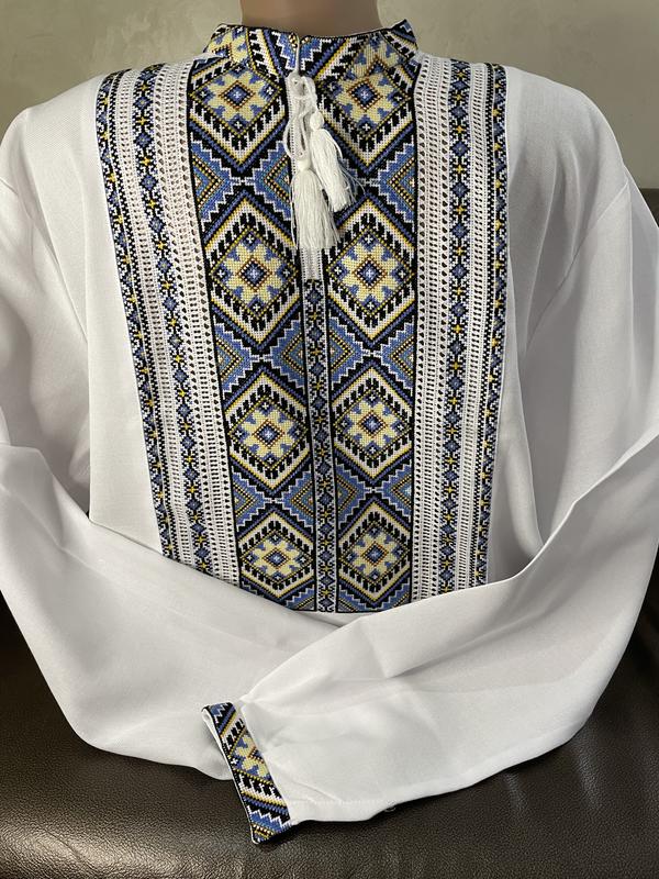 Поздравляем, Вас, это магазин вышиванок "Савчук Вышивка"! У нас Вы можете приобрести дизайнерские и стильные вышиванки ручной работы на каждый день. Перед заказом спросите есть ли размер налицо!!! Размер указывайте в комментариях!!! Есть возможность заказать украинские мужские размеры по размеру воротника (обхват шеи) в сантиметрах: 40-42 (размерная сетка на фото). На фото вышиванка 42 размера, на объеме в груди - 122см. Данная рубашка прекрасно подходит, как для праздничной так и повседневной одежды, брюк, джинсов. Вышивка на рубашке – оберег для человека. Стиль вышивки – крестик. Вышивка – ручная. Ткань – полотно. Цвет ткани – белый. Цвет вышивки – гуцульские. Длина рукава – короткий. Стирка – машинная автомат или ручная не более 40 градусов. Нити – водостойкие. Глажка – лучшее: после стирки, еще немного влажную рубашку погладить и вывесить. Мы уверены, Вы оцените практичность и богатство украинской вышиванки. Приятных и удачных покупок
