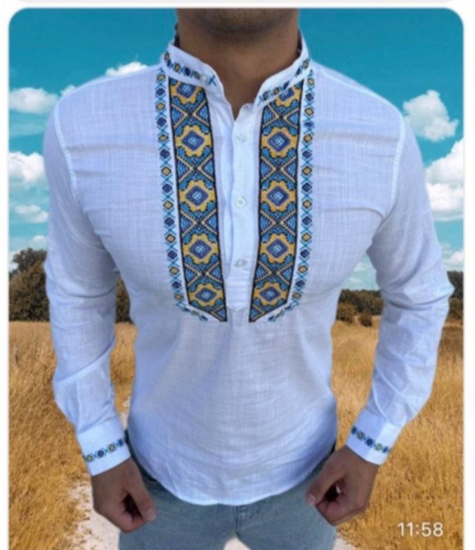 Вишита чоловіча сорочка зі стійкою та довгим рукавом