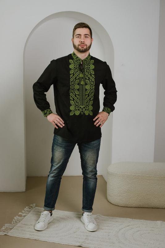 Продам мужскую черную вышиванку с оливковой (зеленой) вышиванкой