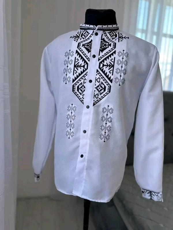 мужская вышитая рубашка тканина льон шьем под заказ размер фото 6