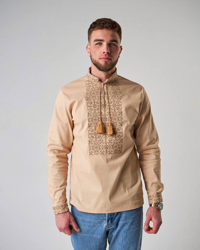 Вышиванка мужская Размеры: M, L, XL, 2XL, 3XL, 4XL, 5XL, 6XL Состав: 80% лен с хлопком, 20% полиэстер Цвет: бежевый ЗАМІРИ ВИРОБУ: M: ОГ 100 см, ОТ 100 см Длина 69 см Длина рукава от горловины 74 см L: ОГ 104 см, ОТ 104 см Длина 71 см Длин рукава от горловины 76 см XL: ОГ 108 см, ОГ 108 см Длина 72 см Длина рукава от горловины 78 см 2XL: ОГ 112 см, ОТ 112 см Длина 73 см Длина рукава от горловины 79 см 3XL: ОГ 116 см, ОТ 113 см Длина 74 см Длина рукава от горловины 80 см 4XL: ОГ 120 см, ОТ 120 см Длина 75 см Длина рукава от горловины 81 см 5XL: 126 см, ОТ 126 см Длина 77 см Длина рукава от горловины 82 см 6XL: ОГ 132 см, ОТ 132 см Длина 79 см Длина рукава от горловины 83 см