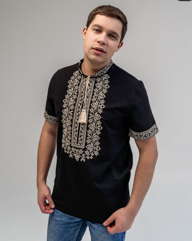 Вышиванка мужская с коротким рукавом, вышитая трикотажная футболка рубашка с орнаментом