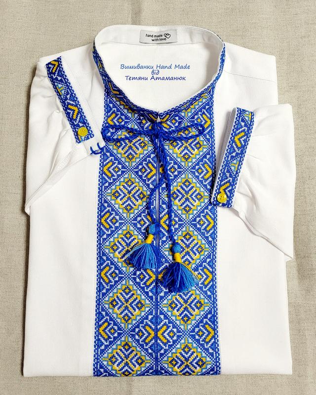 Вишиванка ручної роботи на домотканому полотні(вишиті вставки) "Серпневе небо"р.54(XL) Вишиванка виконана в національних українських кольорах. Для вишивання використаний давній український орнамент. Дана сорочка ідеально підійде для чоловіків із ярко-вираженим почуттям патріотичності. - ### Вишиванка Handmade для чоловіків - розмір (XL); - ### Тканина - домоткане полотно, 100% бавовна; - ### Вишивка акриловими нитками, вишиті вставки і акуратно вшиті у тканину; - ### Горловина на кнопці чи замку; - ### з довгим рукавом; Розмірна сітка для визначення потрібного розміру вишиванки (розміри вказані за мірками ЛЮДИНИ*) * Якщо знімаєте мірки з готового виробу, тоді не дивуйтеся, що ширина сорочки є більшою (~<10 см), за вказану у таблиці. Все вірно, адже виріб повинен бути вільним, забезпечувати свободу та комфорт у пересуванні. РІСТ (см) Міжнародний розмір Український розмір Обхват шиї(см) Обхват грудей(см) Обхват талії(см) Довжина рукава (см) 168 XXS 44 37 88 78 61 171 XS 46 38 92 82 62 174 S 48 39 96 86 63 177 M 50 40 100 90 64 180 L 52 41 104 94 65 182 XL 54 42 108 98 66 184 XXL 56 43 112 104 67 Не знайшли у даній таблиці потрібного розміру вишиванки? Це не привід залишати наш магазин. ************************** Телефонуйте чи звертайтеся через форму зв'язку на головній сторінці, пошиємо вишиванку під замовлення. В нашому інтернет- магазині ************************** Ви маєте можливість придбати високоякісний етнічний одяг ручної роботи, а також замовити вишиванку ручної роботи під індивідуальне замовлення!