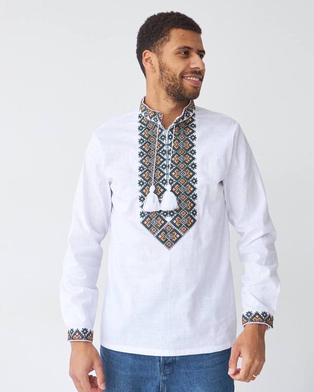 Вышиванка мужская Размеры: M, L, XL, 2XL, 3XL, 4XL, 5XL, 6XL Состав: 80% лен с хлопком, 20% полиэстер Цвет: белый ЗАМІРИ ВИРОБУ: M: ОГ 100 см, ОТ 100 см Длина 69 см Длина рукава от горловины 74 см L: ОГ 104 см, ОТ 104 см Длина 71 см Длин рукава от горловины 76 см XL: ОГ 108 см, ОГ 108 см Длина 72 см Длина рукава от горловины 78 см 2XL: ОГ 112 см, ОТ 112 см Длина 73 см Длина рукава от горловины 79 см 3XL: ОГ 116 см, ОТ 113 см Длина 74 см Длина рукава от горловины 80 см 4XL: ОГ 120 см, ОТ 120 см Длина 75 см Длина рукава от горловины 81 см 5XL: 126 см, ОТ 126 см Длина 77 см Длина рукава от горловины 82 см 6XL: ОГ 132 см, ОТ 132 см Длина 79 см Длина рукава от горловины 83 см
