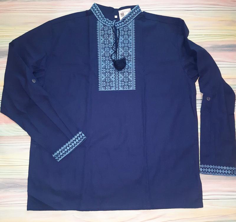 Вишиванка нова з біркою - помилились розміром - читайте уважно заміри і інформацію до них! Вишиванка виконана з щільної льняної тканини, яка дуже проста у догляді та довговічна у носінні. Головною окрасою, й одночасно відмінністю, сорочки є вишиті орнаменти та рукава-трансформери. Довгі рукава на манжетах, можна засукати на 3/4 і застібнути на хлястик з ґудзиком. Крій сорочки вільний. Комір-стійка, прикрашений машинною вишивкою. Візерунок довершує елегантний образ і робить виріб ще більш оригінальним. Виробник - Україна Матеріал - льон (80% льон, 20% поліестер) Розмір - 54 (обхват грудей чоловіка 107-112 см) !! Увага!!! Модель вільна. Тканина не тягнеться ЗОВСІМ! Застібок у моделі немає. Розмір саме 54 , нехай Вас не бентежать виміри. На більший розмір її неможливо одягнути! Заміри: Ширина по грудях - 62 см Довжина сорочки від плеча - 74 см Довжина рукава від плеча - 63 см
