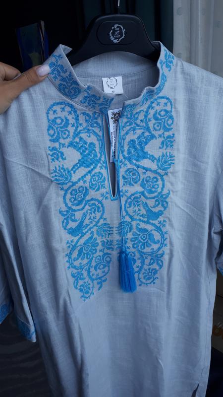 Размеры в наличии:M/46 Размеры которых не имеет в наличии изготавливаем под заказ. Вышитая мужская рубашка прямого кроя, воротник стойкой и длинным рукавом. Ткань – лен-вискоза Цвет основной ткани: белый Цвет вышивки: голубой. Оформите заказ в нашем магазине и мы доставим вышиванку в любой уголок Украины. Дорогие клиенты, хотим обратить Ваше внимание на то, что цвета изделий на экране могут незначительно отличаться от реального цвета. Это зависит от настроек вашего монитора. Перед заказом обязательно уточняйте о наличии изделия.