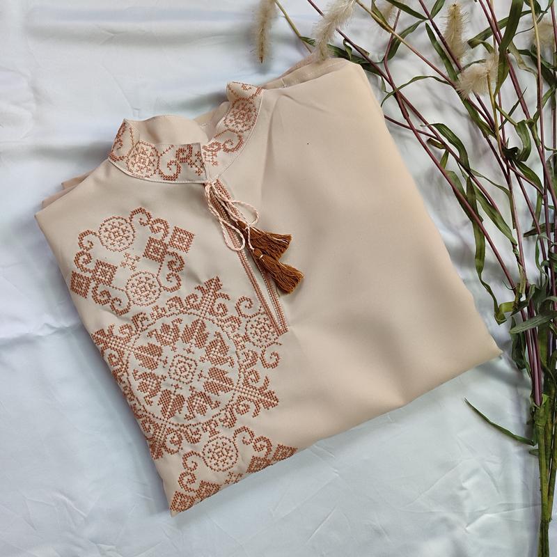 Вишита сорочка чоловіча ◽Ціна 1300 грн ◽ Тканина: габардин ◽Колір: бежевий ◽Розмір: ХL (50 розмір) ◽Заміри: ПОГ 55,5 Довжина 70 Довжина рукава 67,5 🚨📍можливе виготовлення на замовлення