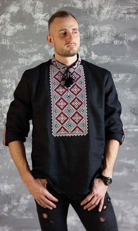 Вышиванка льняная с пат-манжетом вышитая рубашка мужская красивая вышивка 319