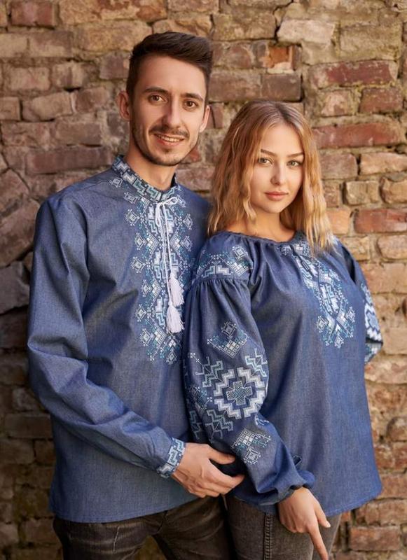 Пересилка цієї моделі здійснюється новою поштою тільки після 100% оплати на картку приватбанку або монобанку впродовж 1-2 робочих днів. Більше 2188 позитивних відгуків за 5 років відданої роботи говорять про те, що нам можна довіряти!!!!!!!!!! З накладною платою не працюємо. Пропонуємо вашій увазі парні вишиванки: жіноча і чоловіча сорочки з подібним орнаментом, виготовлені з однакової бавовняної або лляної тканини синього кольору (на вибір). Жіноча вишиванка прикрашена ,біло-блакитною вишивкою по тканині. Має неглибокий, але широкий виріз горловини. Пишні рукави, зібрані тонкої манжетою у кисті. Поділ вишиванки злегка закруглений і з розпірками, що дозволяє носити вишиту сорочку заправленою або навипуск. У такій вишиванці що молода дівчина, що вже зріла жінка будуть виглядати ніжною і чарівною. Чоловіча ж сорочка-вишиванка більш стримана і классична. З низьким комірцем-стійкою на зав'язках і горловиною на кнопках. Довгий рукав закінчується тонкою вишитою манжетою. Вишивка по тканині виконана блакитними і білими нитками. розмір від 42 до 58 100% бавовна