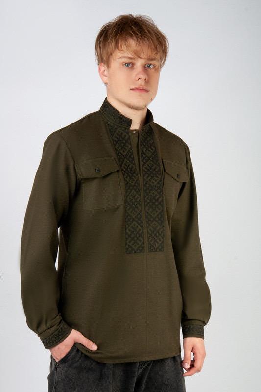 ‼️Доставки через шкаф нет!!️ Мужская вышитая рубашка с длинным рукавом в стиле "Милитары", выполнена из льняного полотна. Льняная ткань отличается высокой прочностью, отлично впитывает влагу, обладает хорошими свойствами воздухо- и теплопроницаемости, проста в уходе и долговечна в использовании. Данная модель прямого кроя, имеет воротник-стойку, рукава с манжетами на застежке и накладные карманы спереди, воротник, манжеты и перед рубашки украшен вышитым орнаментом. Полотно: лляна тканина Состав: 55% лен, 45% вискоза. Вышитый орнамент: машинная вышивка 48 р 1120 грн 50 р 1165 грн 52 р 1205 грн 54 р 1250 грн 56 р 1300 грн