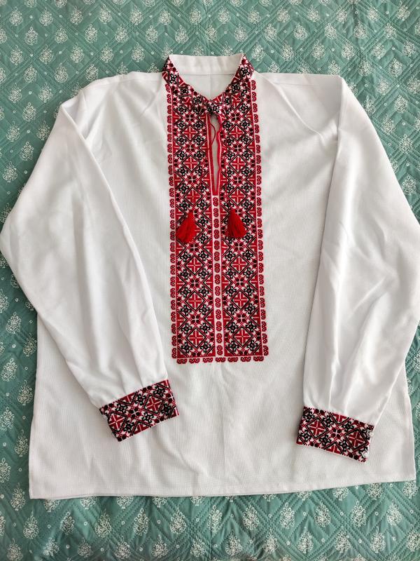 Продаем вышиванку ручной работы на домоканном полотне. Наделась 1-2 раза. В настоящее время стала больше. Замеры: Длина 79см, ширина 65 см, рукав 69см. Дополнительные фото или видео надам. В Киеве возможен самовывиз. Отправлю любым перевозчиком или "безопасной покупкой".