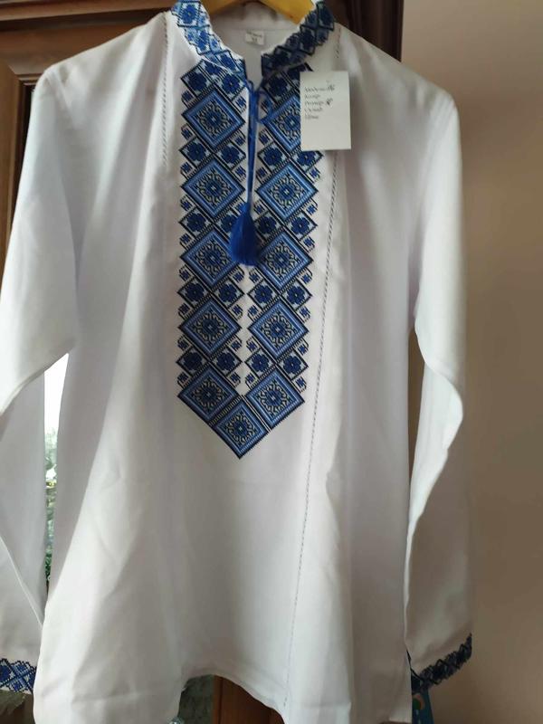 Рубашка вышивана мужская -подростковая. Полотно домоткане, вишивка машинна. Длина рубашки-73см. Длина рукава-65 см. Об,ем груди- 57см. Плечи-45см.