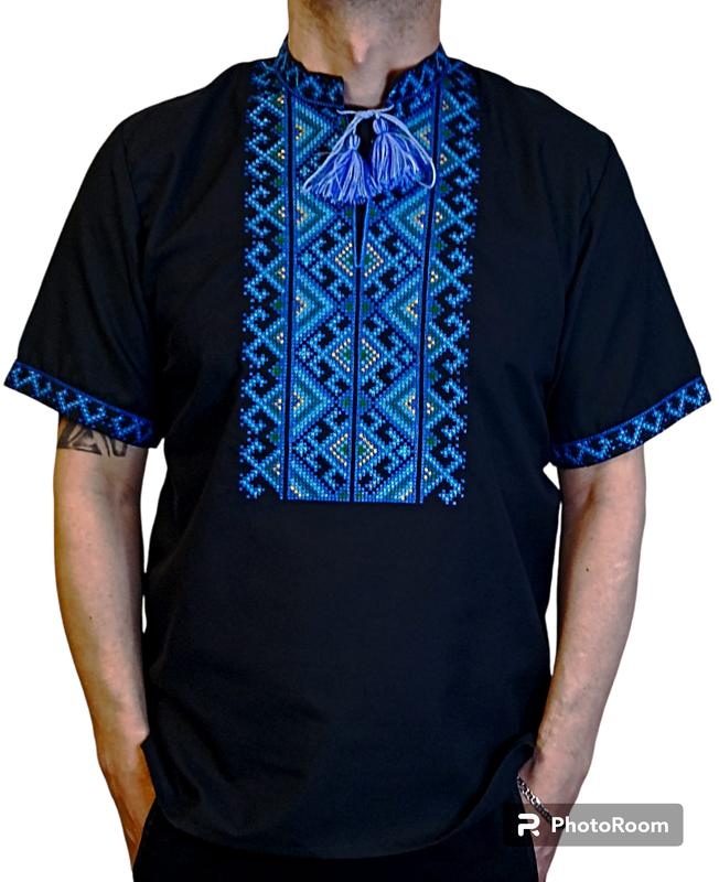 Вышиванка для мужчины черного цвета в больших размерах короткий рукав