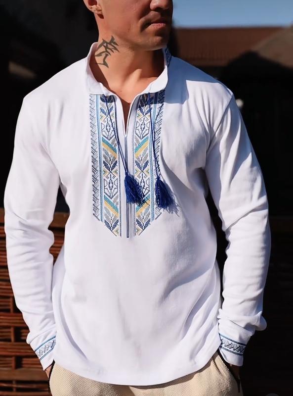Мужская вышиванка белая, вышитая рубашка трикотажная, белья вышиванка, мужская вышиванка с...