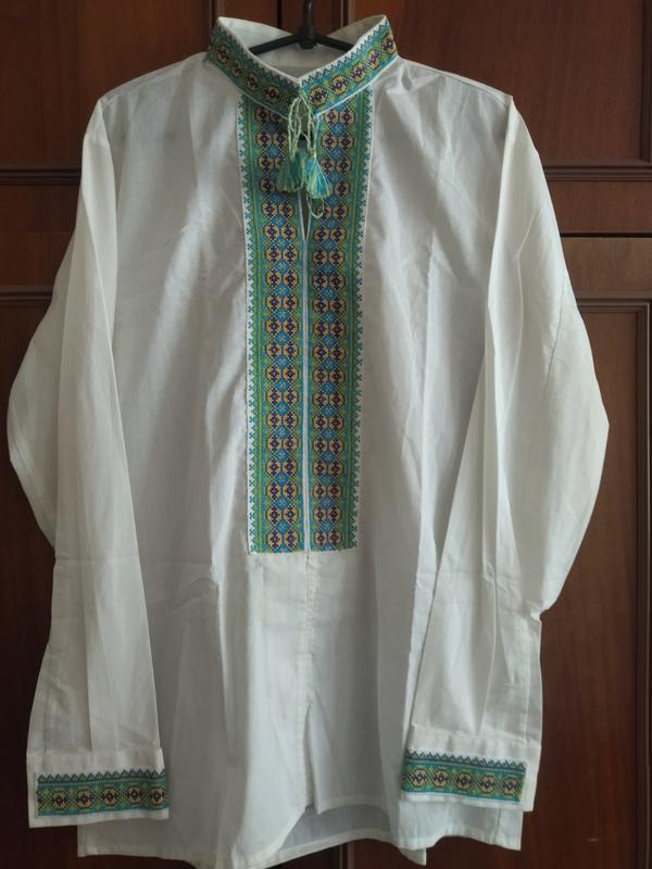 Мужская вышиванка, классическая, на завязках, удобная вышивка крестиком,ткань натуральная.Рукав длинный с вышитым манжетом.Ромир -50, ОГ - 104-108,длина рукава 65 см, длина изделия -75 см.Цина 2500грн.