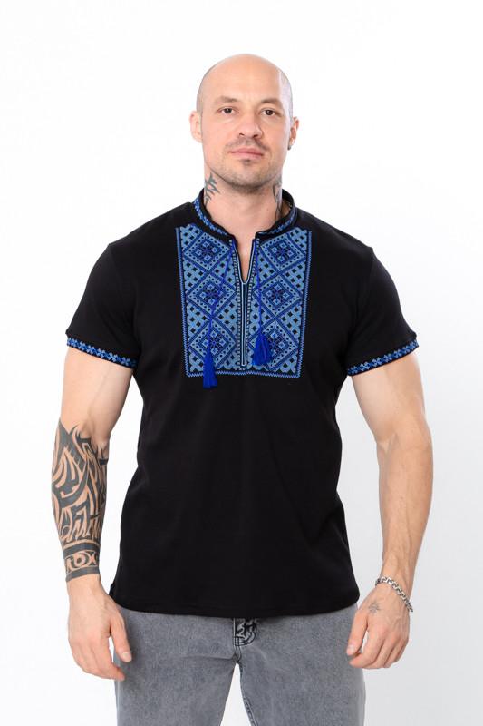 Черная вышиванка мужская, трикотажная рубашка с вышивкой, мужская футболка с вышивкой, три...