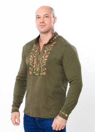 Мужская вышиванка с длинным рукавом, мужская вышиванка хаки, вышитая рубашка трикотажная,...