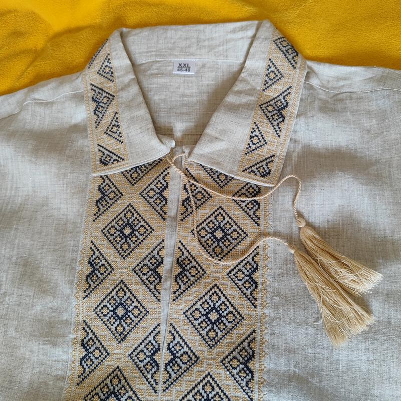 Мужская вышитая рубашка большого размера Машинная вышивка Склад тканини 100% льон Замеры: Плечи 52см Груди 68 см Длина 80 Длина рукава 64см Обхват манжети 23 см Качественное фабричное производство
