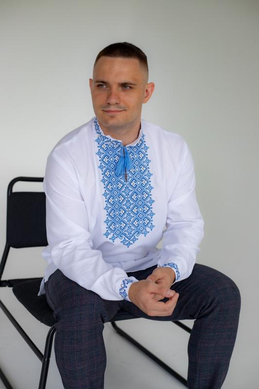 Вышиванка с голубо-желтой вышивкой рубашка мужская вышиванка белая с желто-голубой вышивко...