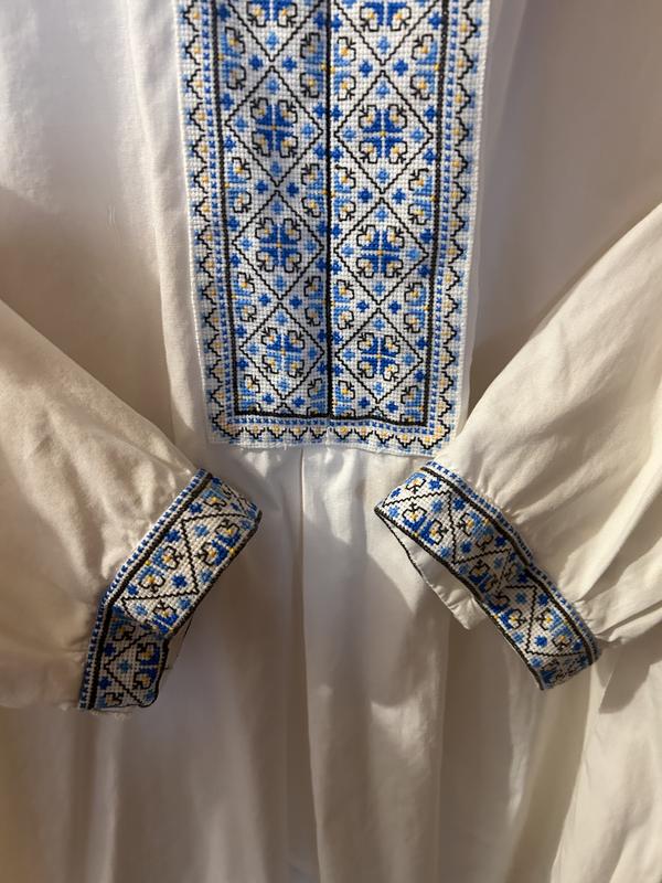 Мужская вышитая рубашка р. L - ручная вышивка. Рубашка одевалась всего один раз, поэтому имеет два недостатка (дырка от утюга на рукаве, небольшое пятно).