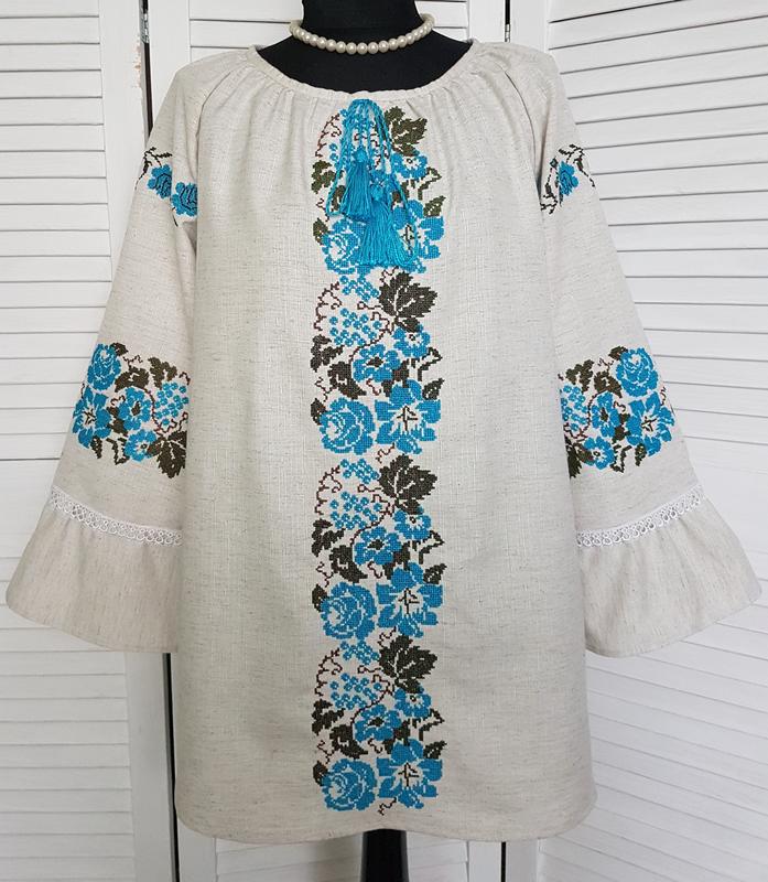Рубашка вышитая девчачья на ткани коламийская льняная, вышивка машинная крестик. Замеры: полширина переда - 59 см, д.сор.- 67 см, д.рук.-60 см. Вышивка и пошив аккуратные. Поясок пошит с кисточками прилагается.