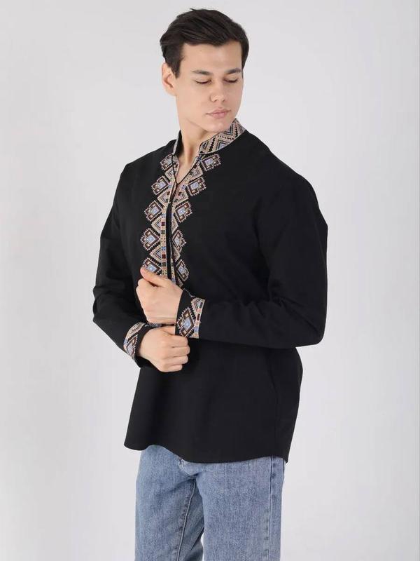 Колоритная мужская рубашка вышиванка, украинская блуза вышиванка, этатно рубашка с вышивко...