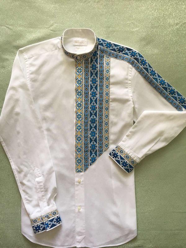 Рубашка вышита лентами с украинским орнаментом. Крой прямой Замеры: Плечи-43 см Пог{пахви}-48 см Талия-46 см Длина рукава-66 см Длина-75 см