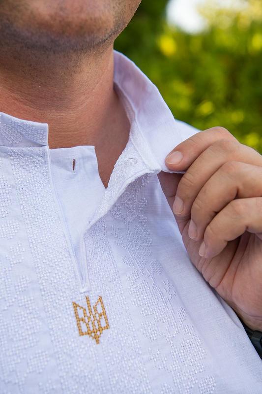 Вышиванка мужская белая золотой герб, вышиванка мужская классическая, вышитая рубашка для...