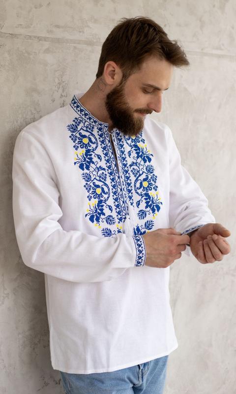 Рубашка вышитая рубашка мужская вышиванка одежда вышитая сине-желтая
