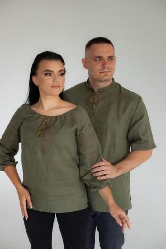 ‼️‼️‼️Наличие размера уточняйте!!!️‼️‼️ Парный вышитый набор цвета хаки тканина: льон размеры мужской вышиванки: 42-58 размеры женской вышиванки: 42-54 тканина: льон Стоимость указана при самых маленьких размерах.
