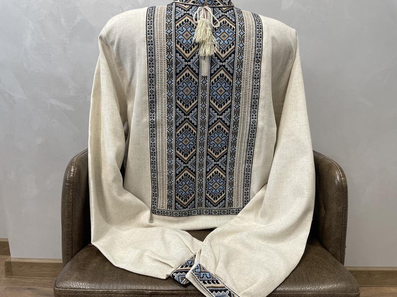 Стильна чоловіча вишиванка на сірому льоні ручної роботи. ч-2136