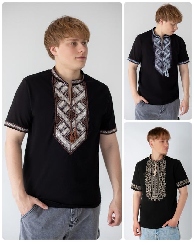 Мужская трикотажная вышиванка, футболка с вышивкой